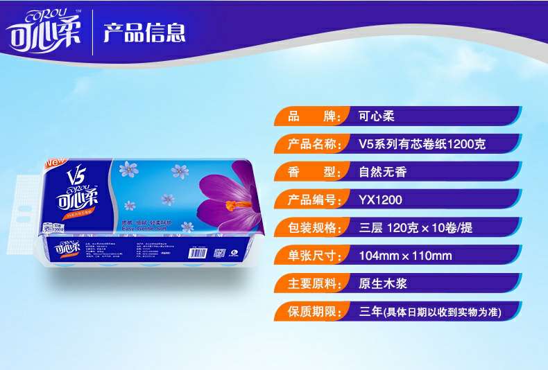 可心柔 V5系列CoRou云柔系列白色木浆110抽